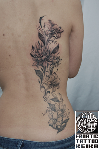 ユリの花タトゥー ‐ Lily Tattoo恵華 -Keika-東京港区田町のタトゥースタジオ 墨篝 SUMI KAGARI。