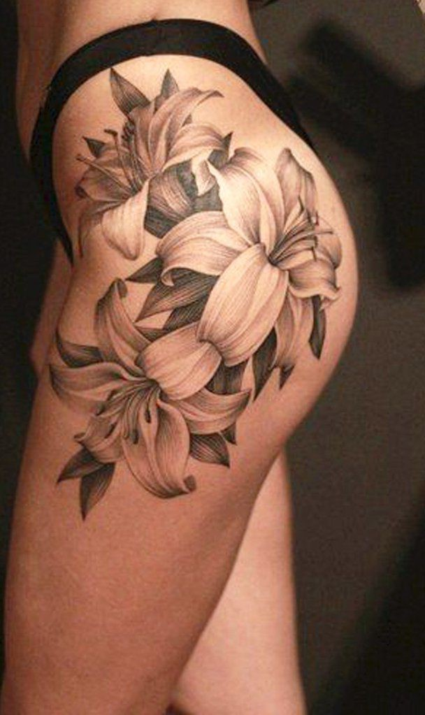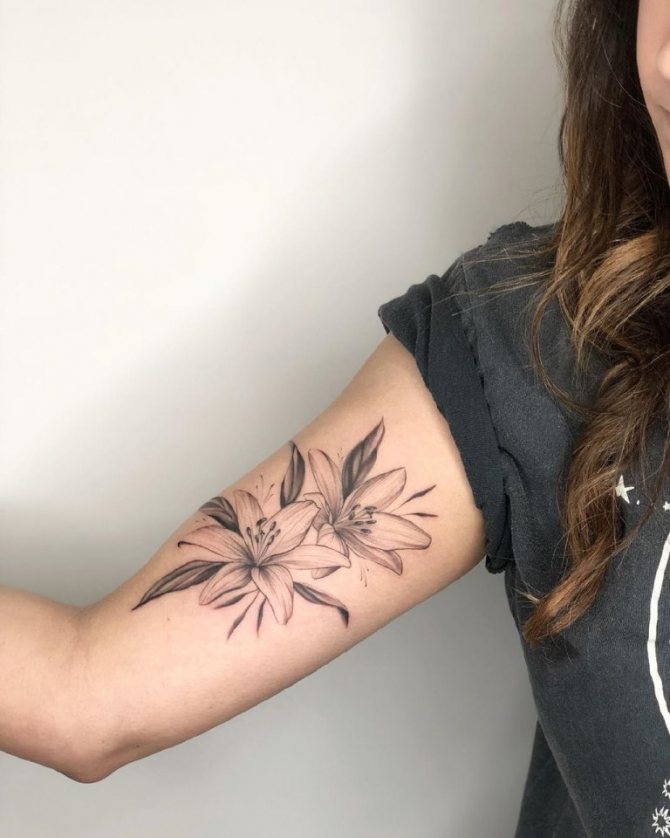ユリのタトゥー: 意味, 女の子のための, スケッチ, 腕に, 黒, 写真, 足に, 紋章, 腰に。