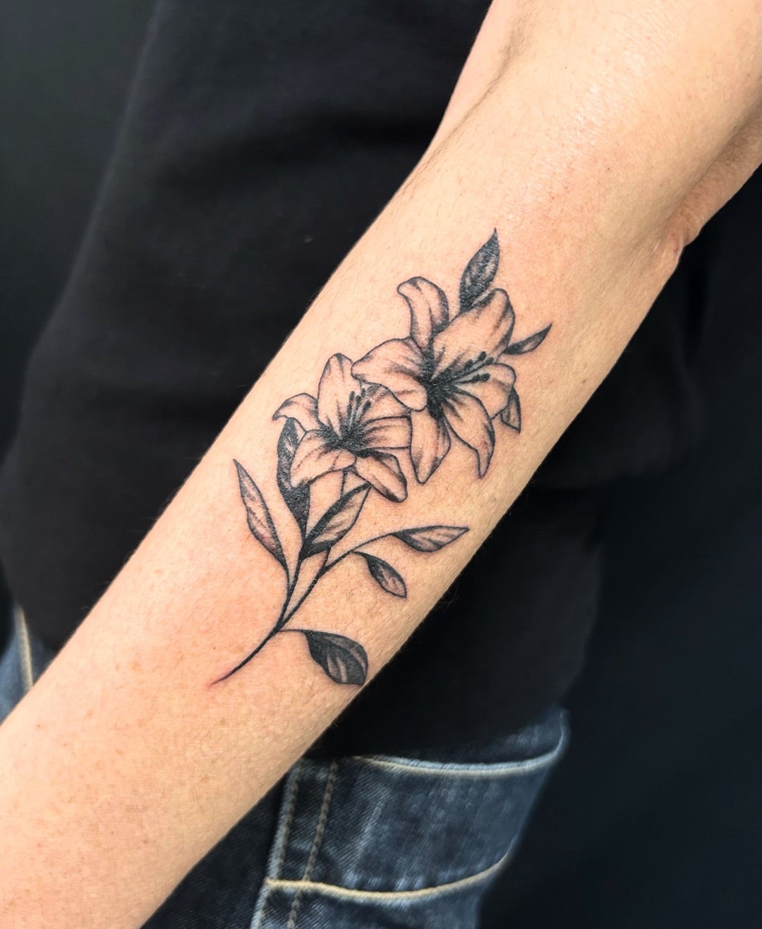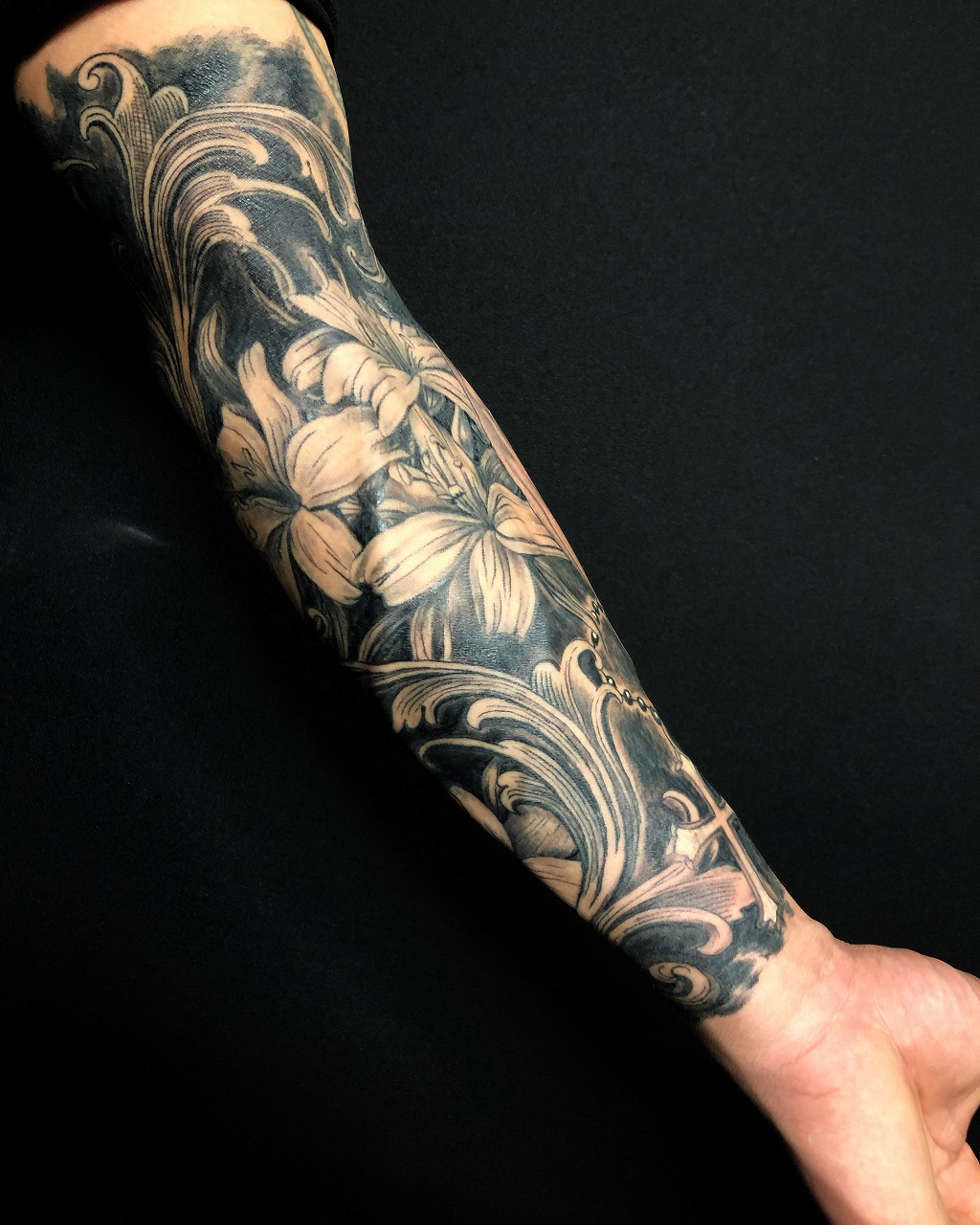 腕に百合の花のタトゥーtattoo 千葉幕張刺青irezumi 千葉女性彫師千葉タトゥーは千葉市花見川区幕張本郷のFREE:Z TATTOO フリーズタトゥ。