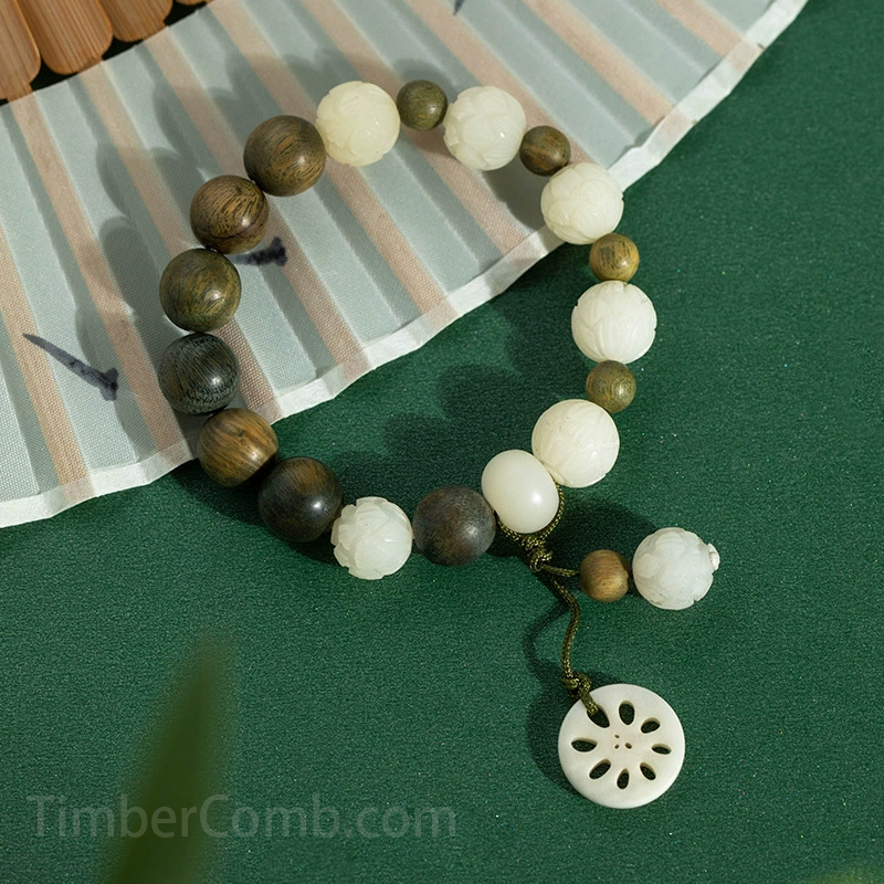 仏教数珠ブレスレット 菩提 蓮デザイン 仏教数珠 緑檀 リュクタン ブレスレット 女性用 お守り 厄除け 開運 癒し。