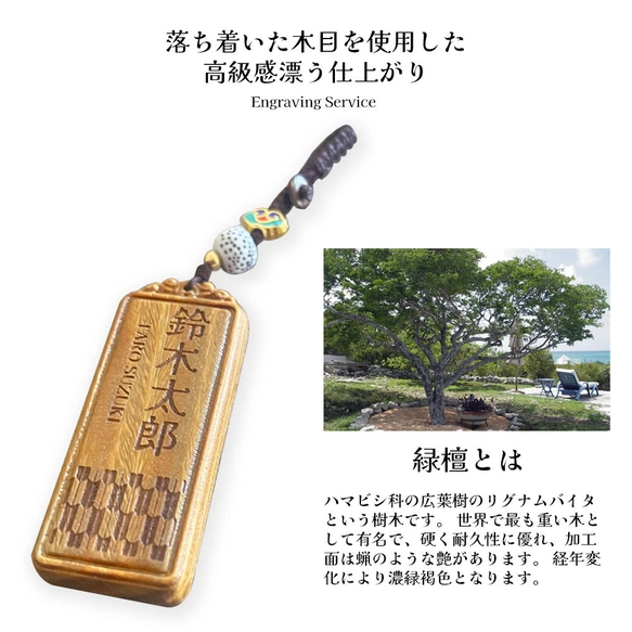 緑檀 ビルマ産翡翠 グリーンゲサニティッククォーツのお守りストラップ 唐木 ジェダイド 硬玉 グリーンルチルクォーツ梅本坊。
