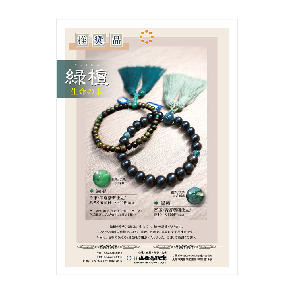 創価学会仏壇仏具 素挽き緑檀念珠 全3サイズ赤澤朝陽。