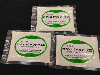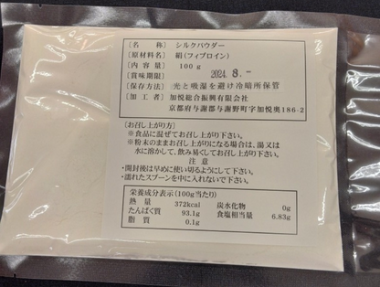 食べる絹 商標登録 シルクパウダー100 シルクアミノ酸ペプチド BCAA健康補助食品シルク微細粉末 分子量500以下 Silkフィプロイン100%,100g入り絹蛋白プロティンサプリメント 絹糸加水分解物1週間分 日本製MAYUKO絹工房 Silk Factory。
