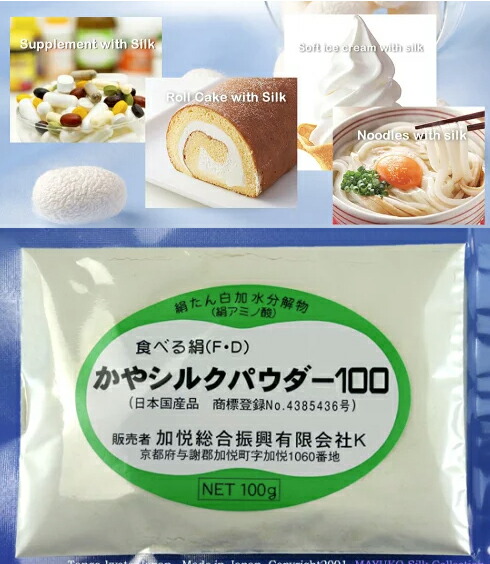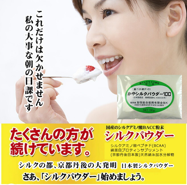 楽天市場 食べる絹 商標登録 シルクパウダー100 シルクアミノ酸ペプチド BCAA健康補助食品シルク微細粉末 分子量500以下 Silkフィプロイン100%,100g入り絹蛋白プロティンサプリメント絹糸加水分解物 1週間分 日本製MAYUKO絹工房 Silk Factory。