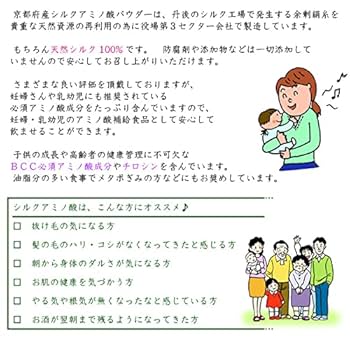 楽天市場 食べる絹商標登録 シルクパウダー21食べるシルク 健康補助食品 分子量500以下 Silkフィプロイン70%1kg必須アミノ酸 BCAA 食品添加用デキストリン 食用澱粉 30%配合日本製 保湿 天然絹糸加水分解物 MAYUKO絹工房 SilkFactoryみんなのレビュー。