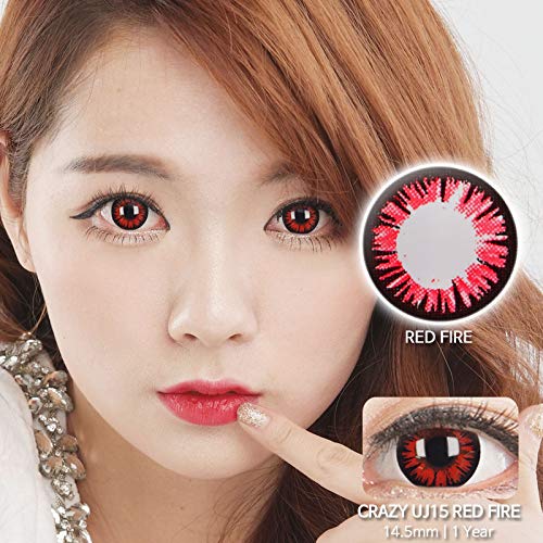 Amazon度なし韓国カラコン 14.5 カラコン 1年 用 2枚1組 -0.00 カラーコンタクト 赤 レッド コスプレ カラコンUJ15 Red firePINKYLENSソフトコンタクトレンズ。