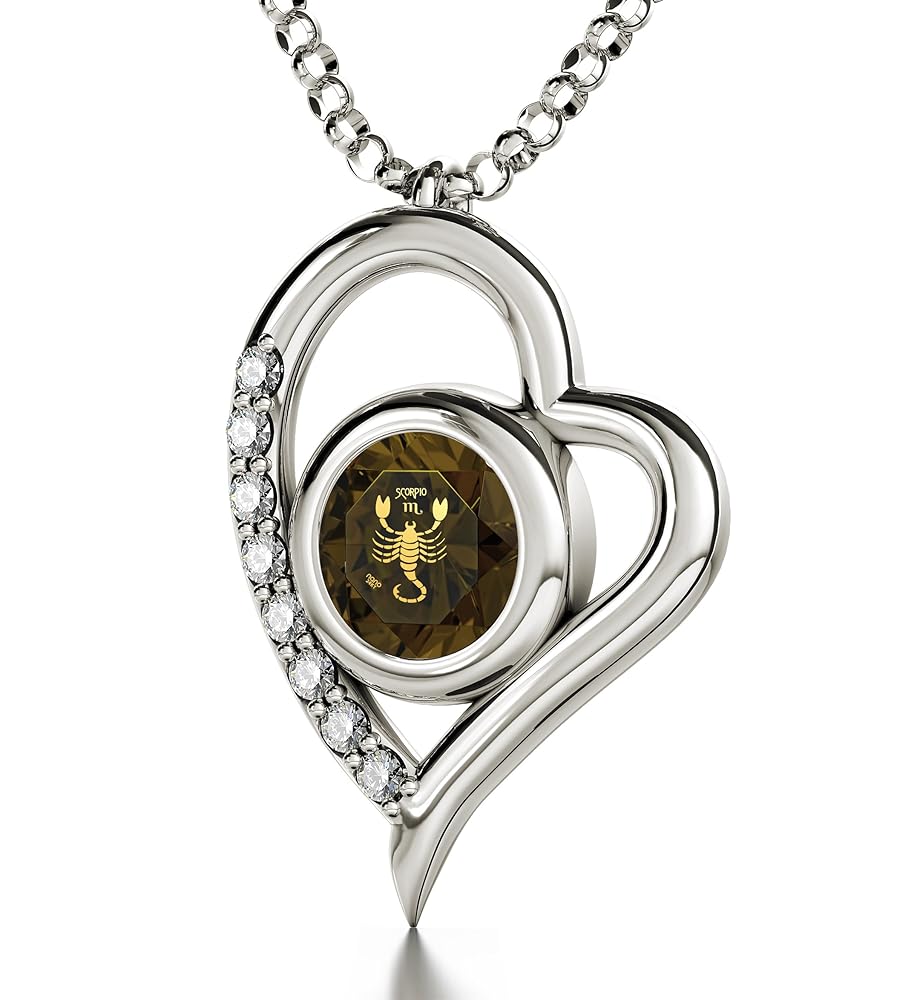 Amazon.co.jp: さそり座 ハートネックレス 11月誕生石 星座ペンダント 10月24日~11月22日 誕生日用 ピュアゴールドスモーキーキュービックジルコニアに刻まれ、18インチチェーン, ジェムストーン, キュービックジルコニア : ファッション。