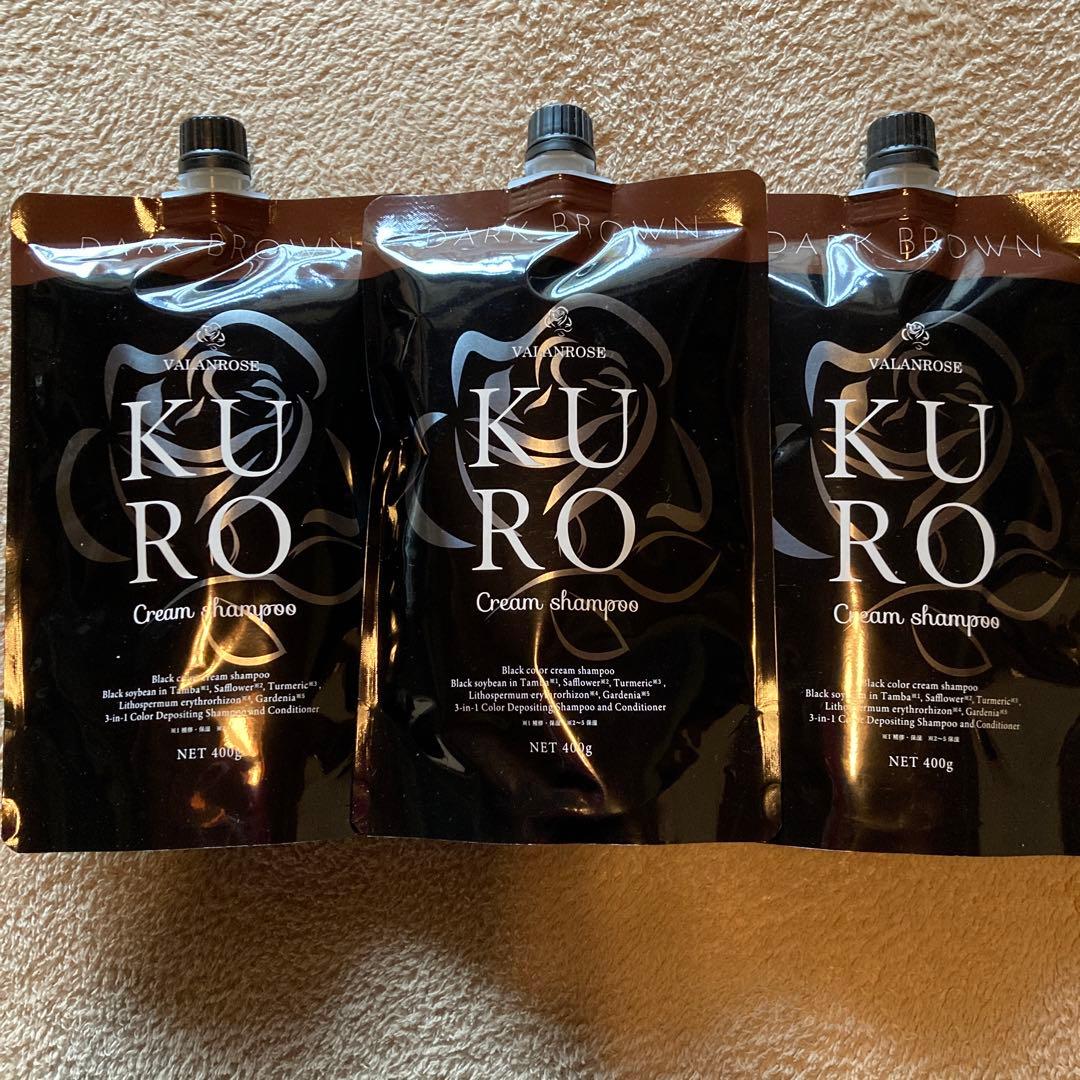 バランローズ KURO クリームシャンプーダークブラウン 400g×3袋白髪染め バランローズkuro 黒。