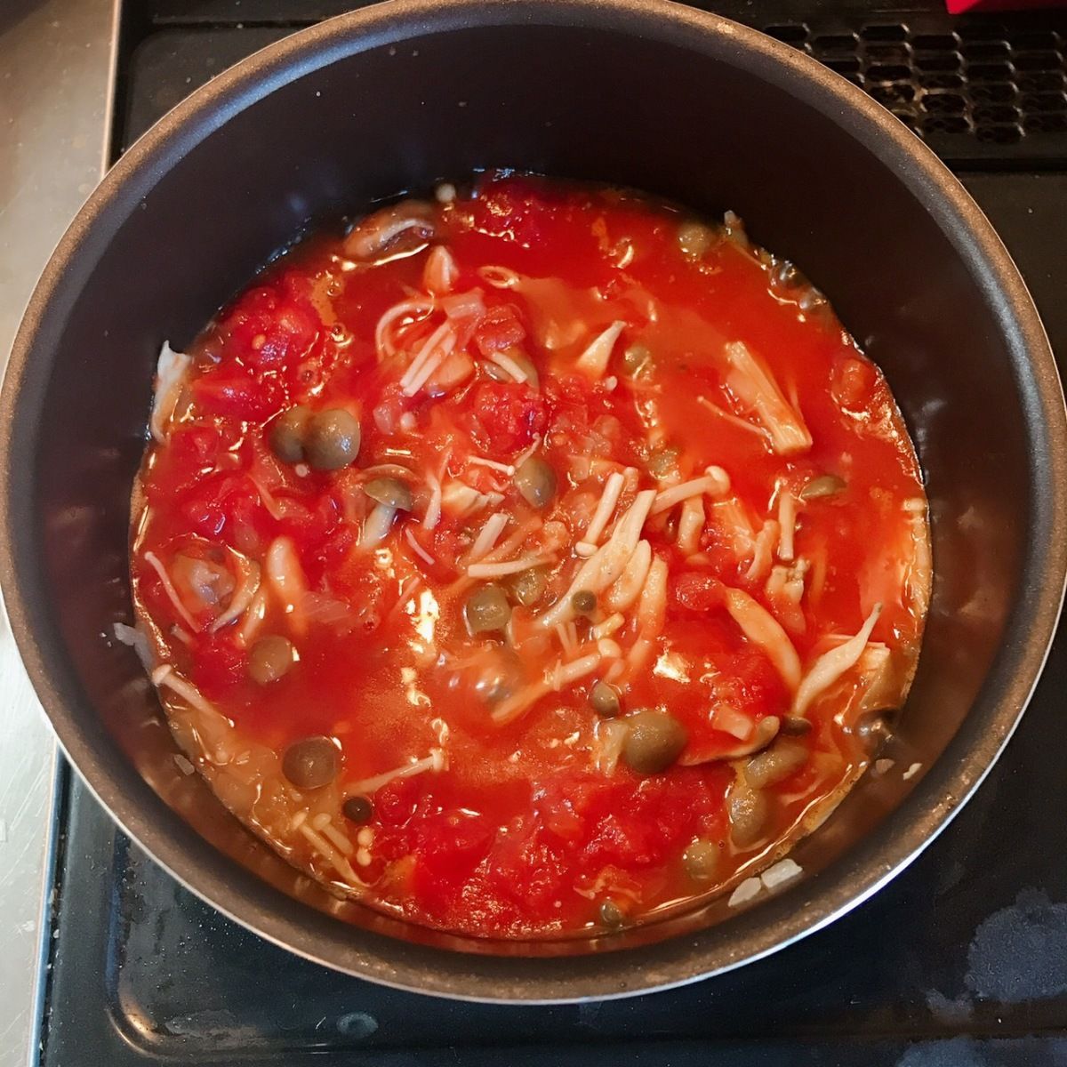 5日分の脂肪燃焼スープの作り置き。ダイエット脂肪燃焼 キャベツ半玉 たまねぎ1個 にんじん1個 えのき1つ まいたけ1つオリーブオイル大さじ1 トマト缶1缶 水600ml コンソメ小さじ2 タバスコ数滴 ブラックペッパーお好みで①キャベツ、たまねぎ、にんじん、えのき、舞茸を、細かく切っておく。