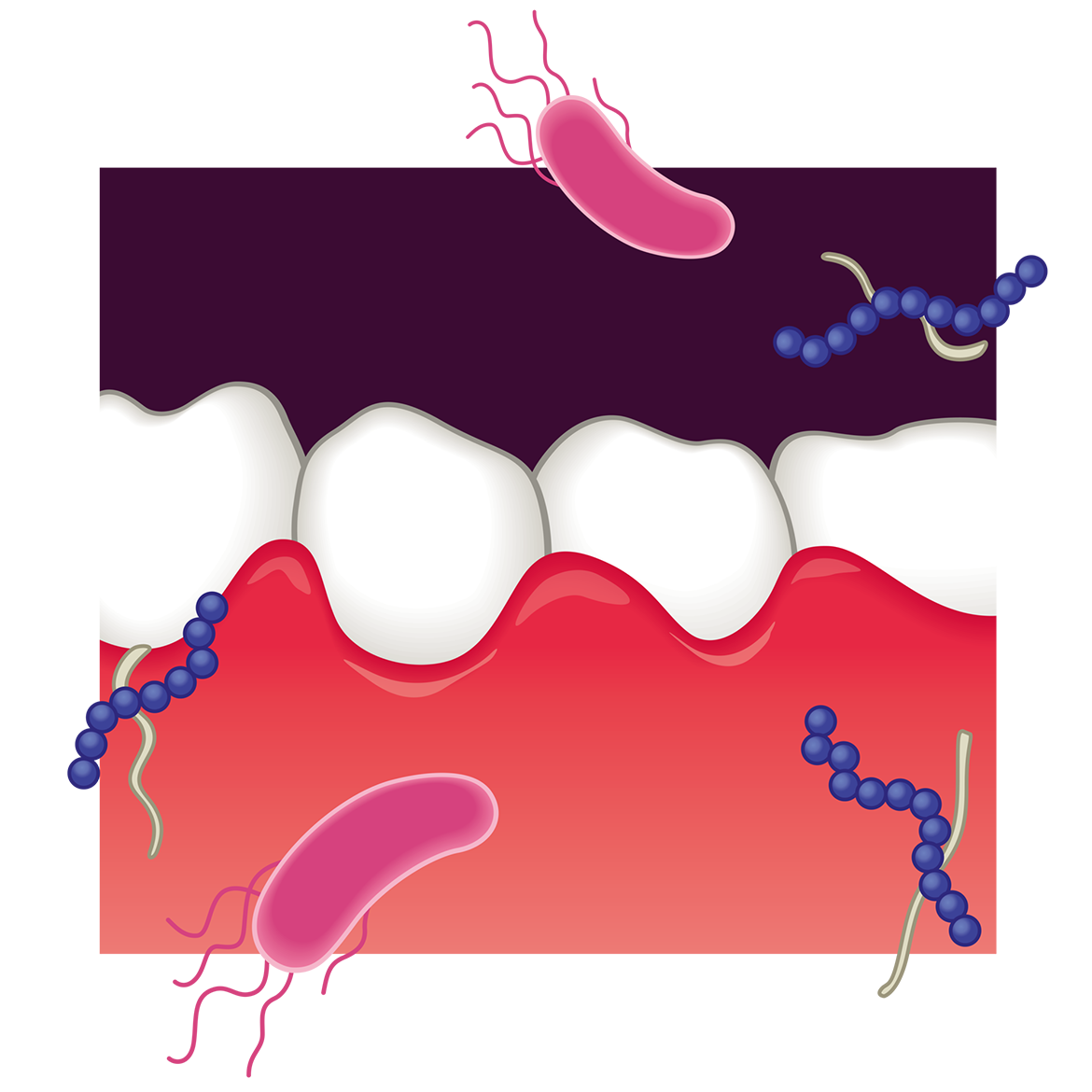 口の中の虫歯のばい菌イラストのフリー素材イラストイメージ。