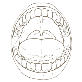 開いた口の歯イラストのフリー素材イラストイメージ。