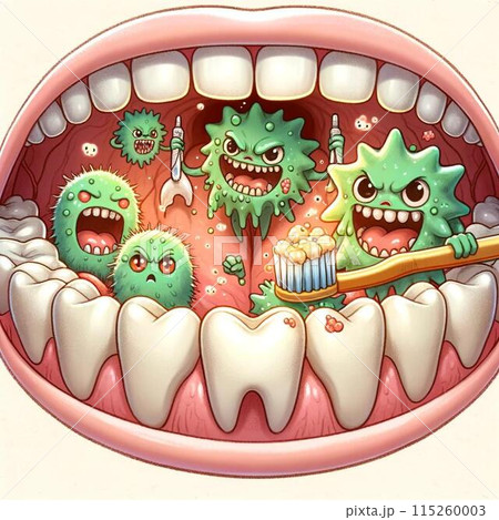 虫歯と菌だらけの口内環境 キャラクターのイラスト素材83156347- PIXTA。
