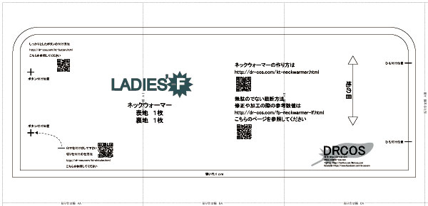 無料型紙 ネックウォーマー キッズML&レディース3サイズ有作り方SMILEWORKS25。