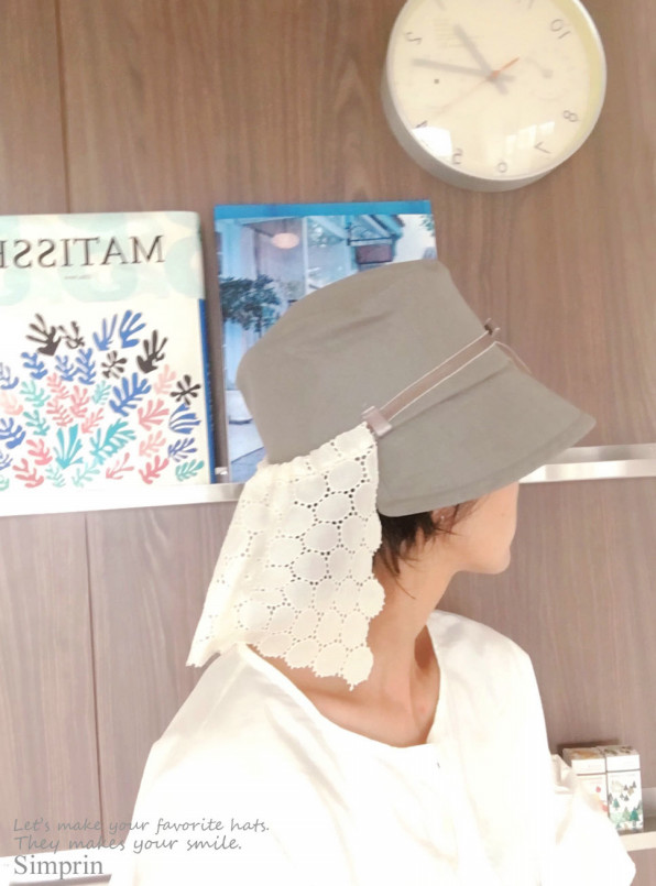 サークルレースのネックカバーの作り方 リボン編帽子教室・アトリエ Simprin 東京・江東区。