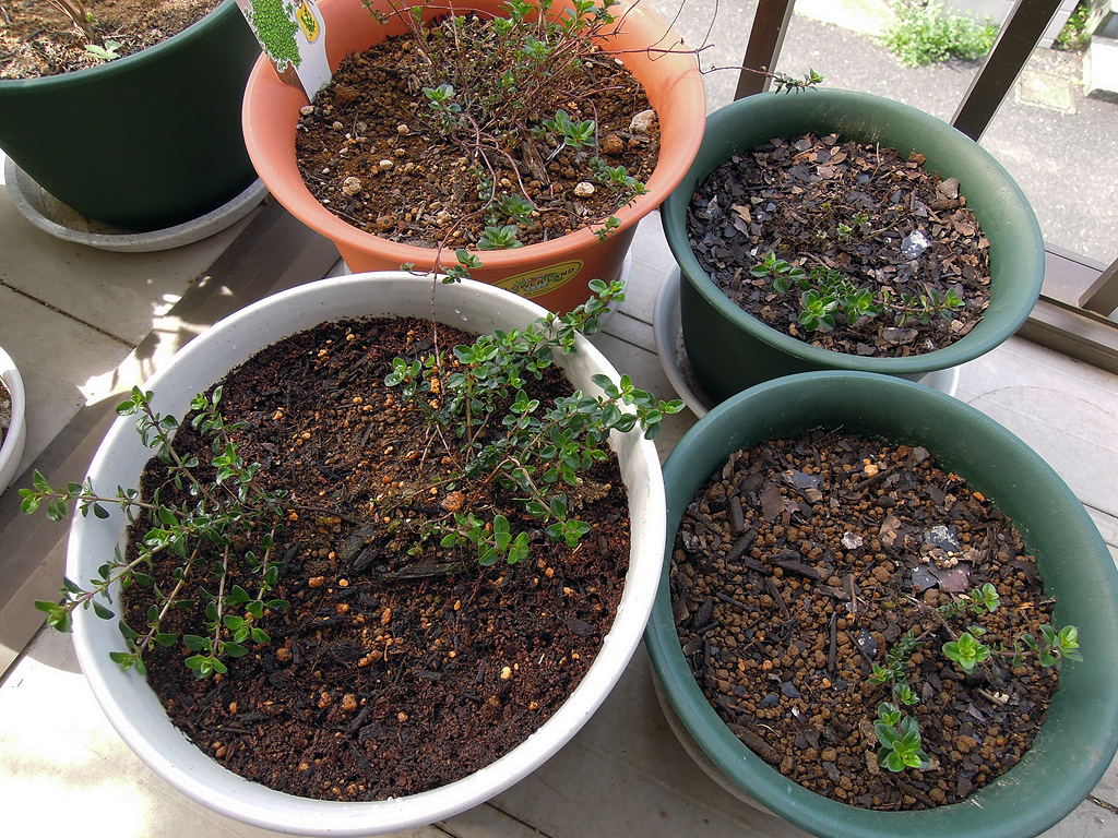 圧条法 茎伏せ で殖やしたタイム タボールの子株を鉢に植え替えるデリシャスガーデン あるいは 2050年地球の旅。