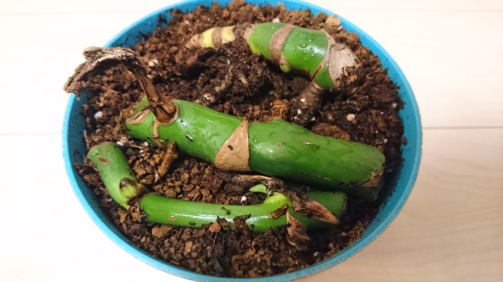 モンステラの挿し木と茎伏せに初挑戦 3植え付け後2か月間の栽培記録:茎伏せ編2021年9月~11月。