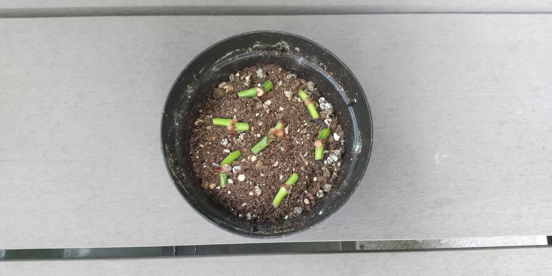 カーティシー 茎伏せ 発根済み 発芽予兆有り 親株は10年以上前入手。