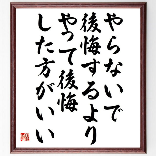 名言「やらないで後悔するより、やって後悔した方がいい」手書き書道色紙額 受注後の毛筆直筆 Y4098iichi日々の暮らしを心地よくするハンドメイドやアンティークのマーケットプレイス。