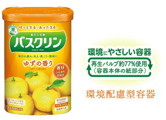 バスクリン」の容器と環境サスティナビリティ株式会社バスクリン。
