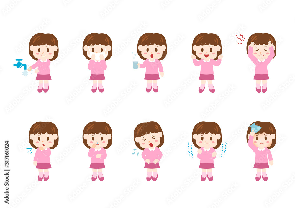 女の子の体調不良と健康管理のイラストセット の Stock ベクターAdobe Stock。