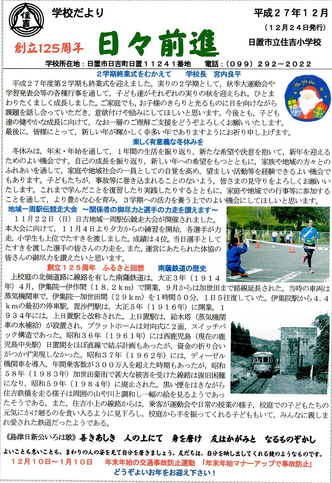日置市立住吉小学校::学校便り「日々前進」 12月号。