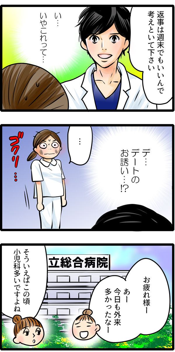 イケメンドクターのお誘い これってデート?マンガ・ママナースもも子の今日もバタバタ日誌 96看護roo! カンゴルー。