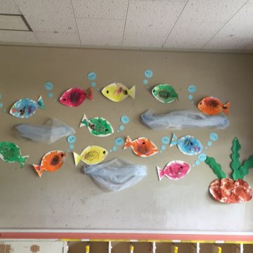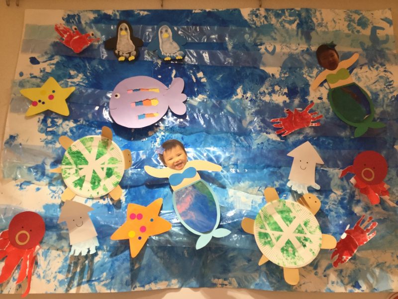2歳児 海の世界をみんなで製作しました!!!すえさみこども園 石川県小松市。