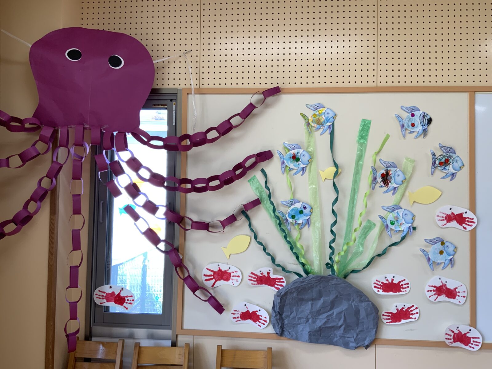 壁面飾り 壁面製作 7月 8月 海 海の生き物 魚 幼稚園 保育園。