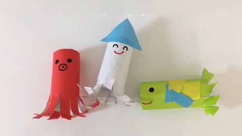 海の生き物の工作簡単に作れるトイレットペーパーを使った保育士製作のアレンジ動画。