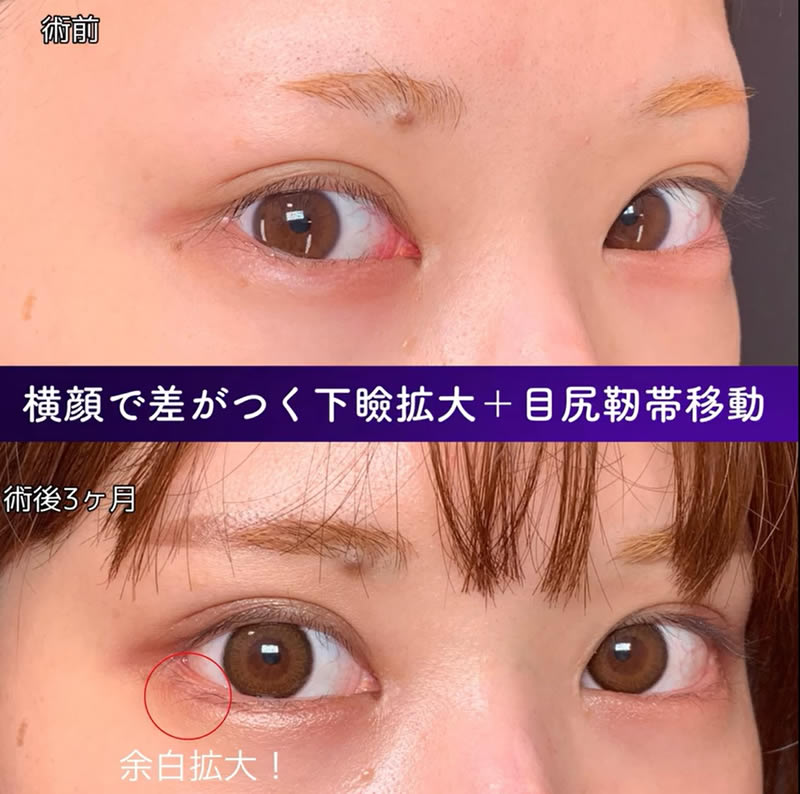 タレ目整形4点セット グラマラスライン両側切開+目尻切開+目尻靭帯移動+クマ取りエターナル美容クリニック。