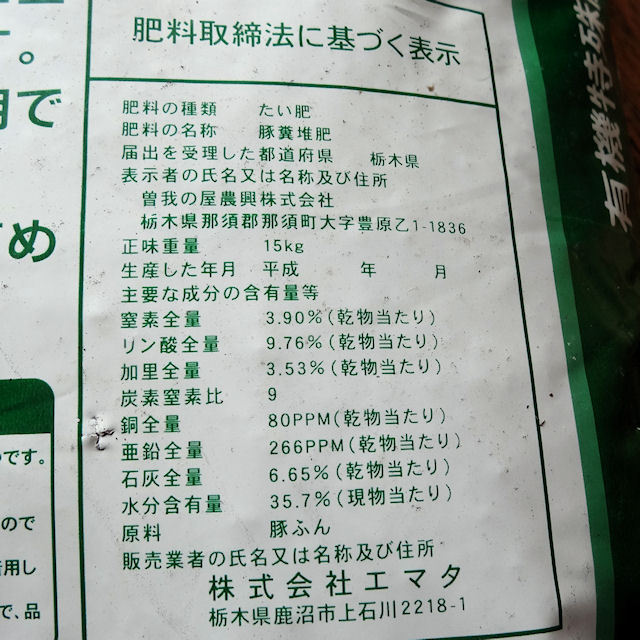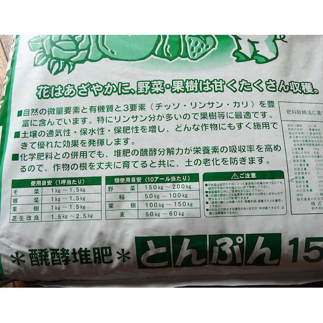 リン酸たっぷり-とんぷん発酵堆肥 N3.9-P9.7-K3.515kg 動物糞肥料有機肥料たまごや商店。