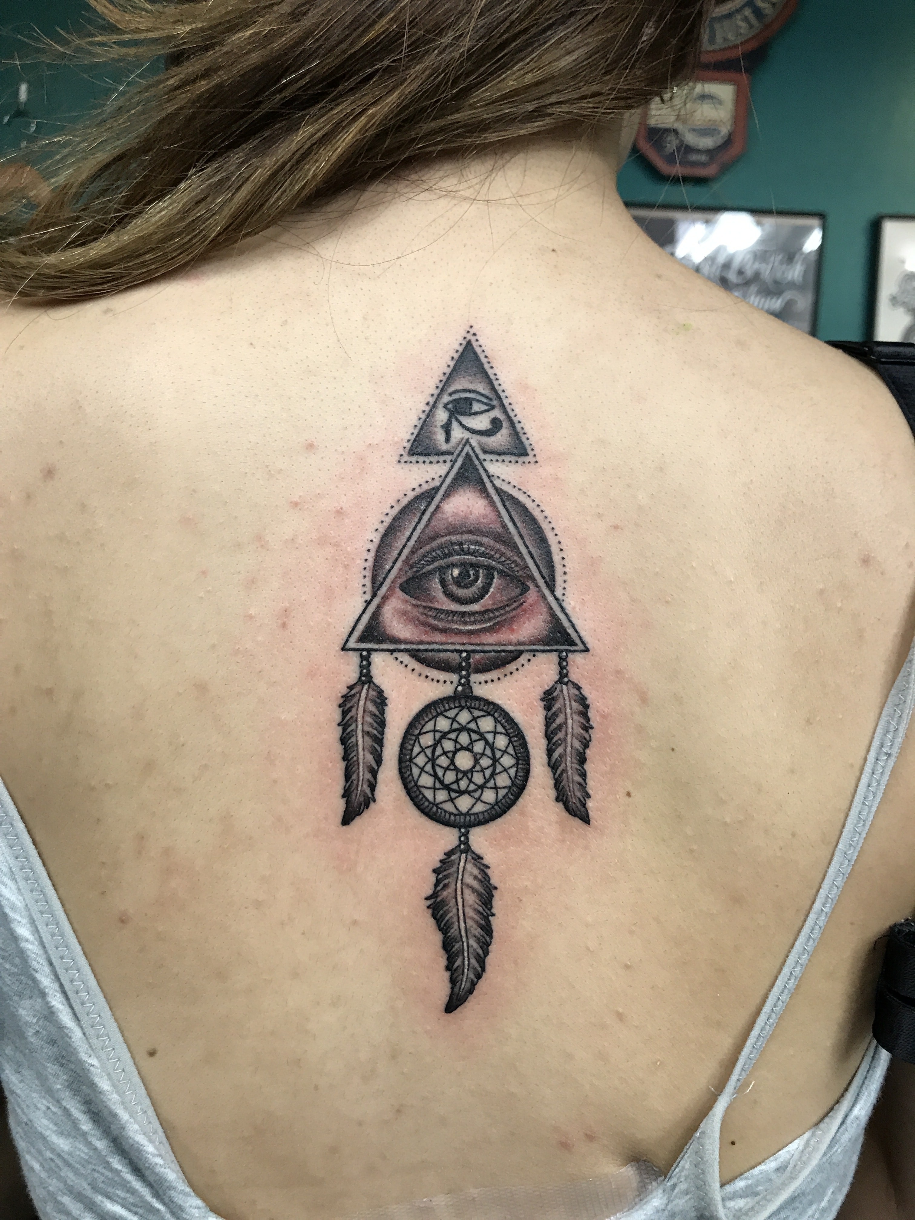 目 ホルスの目 ドリームキャッチャーのタトゥー 刺青 女性NINE STATE DESIGN大阪 日本橋 タトゥースタジオOsakaTattoo刺青 和彫り タトゥ。
