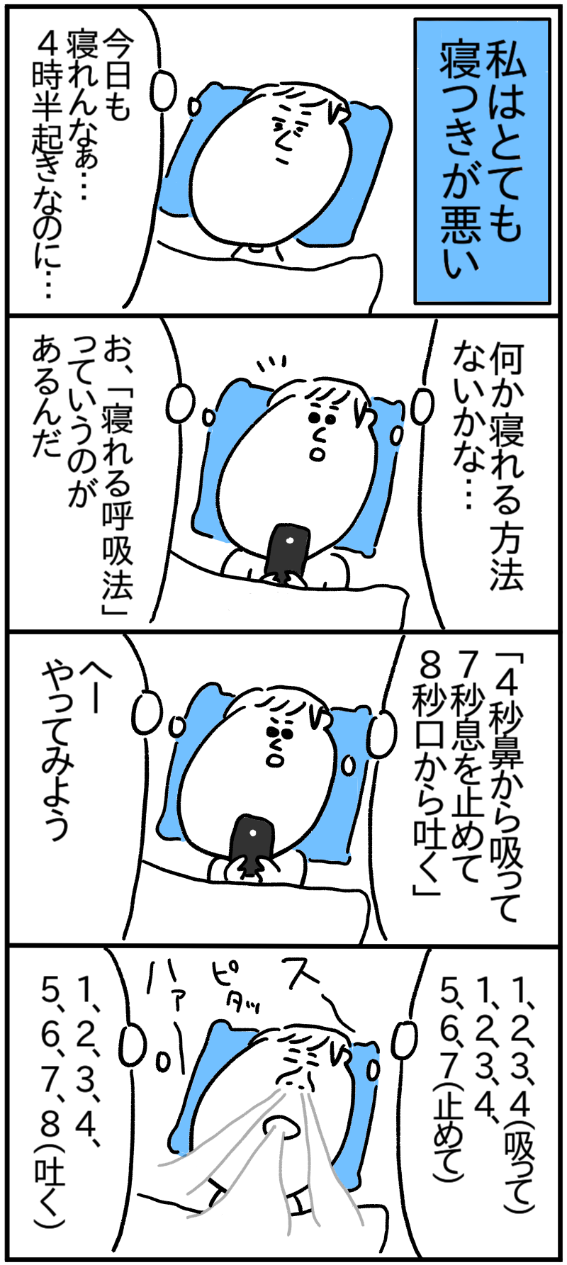 寝つきが悪かった方が一瞬で眠れるようになった方法を描いた漫画に「効果ありそう」「逆に無理そう」「この方法も」など様々な声 - Togetter。