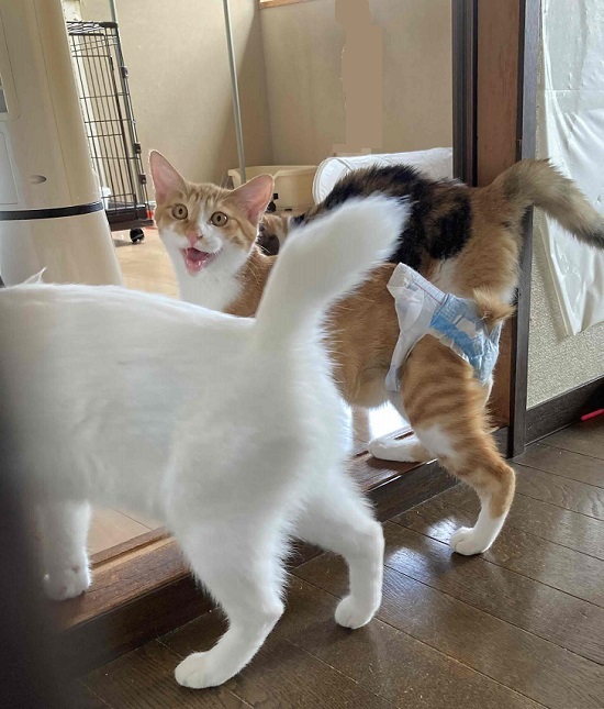女子会に参加するにゃ~ おむつをはいた子猫 茶白猫「三四郎くん」ものがたり<その20> - にゃんこ。
