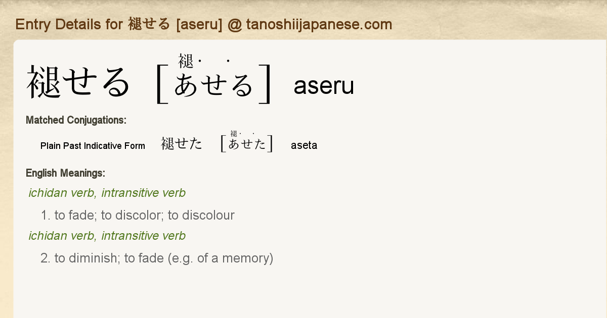 Entry Details for 褪せたaseta- Tanoshii Japanese。