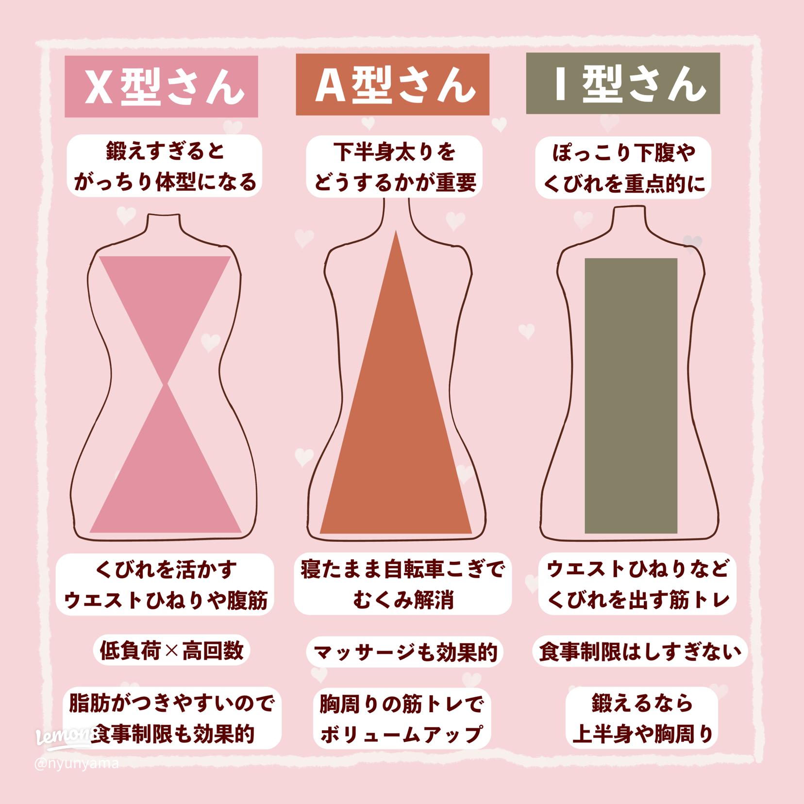 今年こそ痩せたいあなたへ♡知って損なし!体型タイプ X型・I型・A型・V型-ftn。