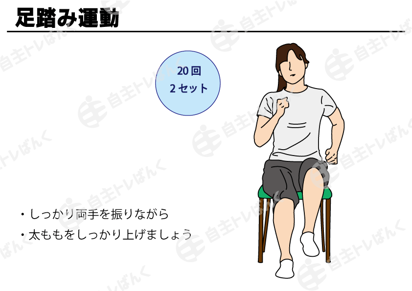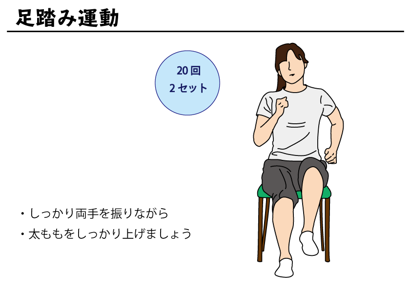 足踏み運動 座位自主トレばんく 筋トレ・ストレッチ・リハビリのイラスト資料。