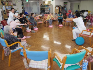 小規模リハビリ特化型デイサービスデイ・スタジオon X: "今日の運動はバランスボールの上で座位維持トレーニング!普段仙骨座りになりやすい高齢者にとって、自ら骨盤を起こして、体幹筋も上手に使えないと中々難しいので、笑いながら楽しく行えました!フレイル。