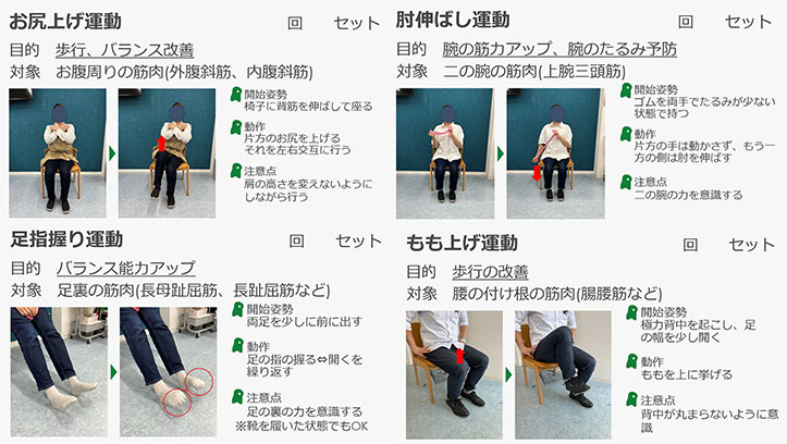 座位自主トレばんく 筋トレ・ストレッチ・リハビリのイラスト資料。