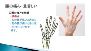 腰痛のときに使う手のツボ~腰痛点~実籾駅 東習志野 くくる整骨院。