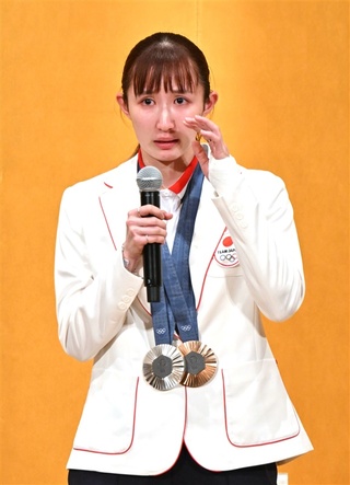 しずちゃん、涙の引退会見 「中途半端ではできない」アマチュアボクシングからの引退記者会見で、涙ぐむ南海キャンディーズの「しずちゃん」こと山崎静代さん=19日午後、大阪市四国新聞社。