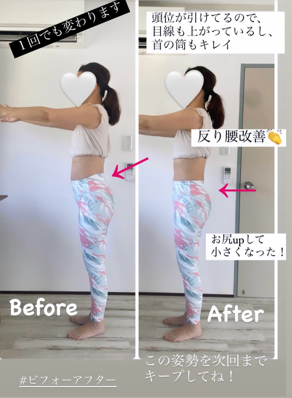 ビフォーアフター まずは反り腰を直そう!!ゆめボディ♡はるみん食べても痩せる!7日間で平均-3kg♡50代オトナ女子も”ゆめボディ”に変化。