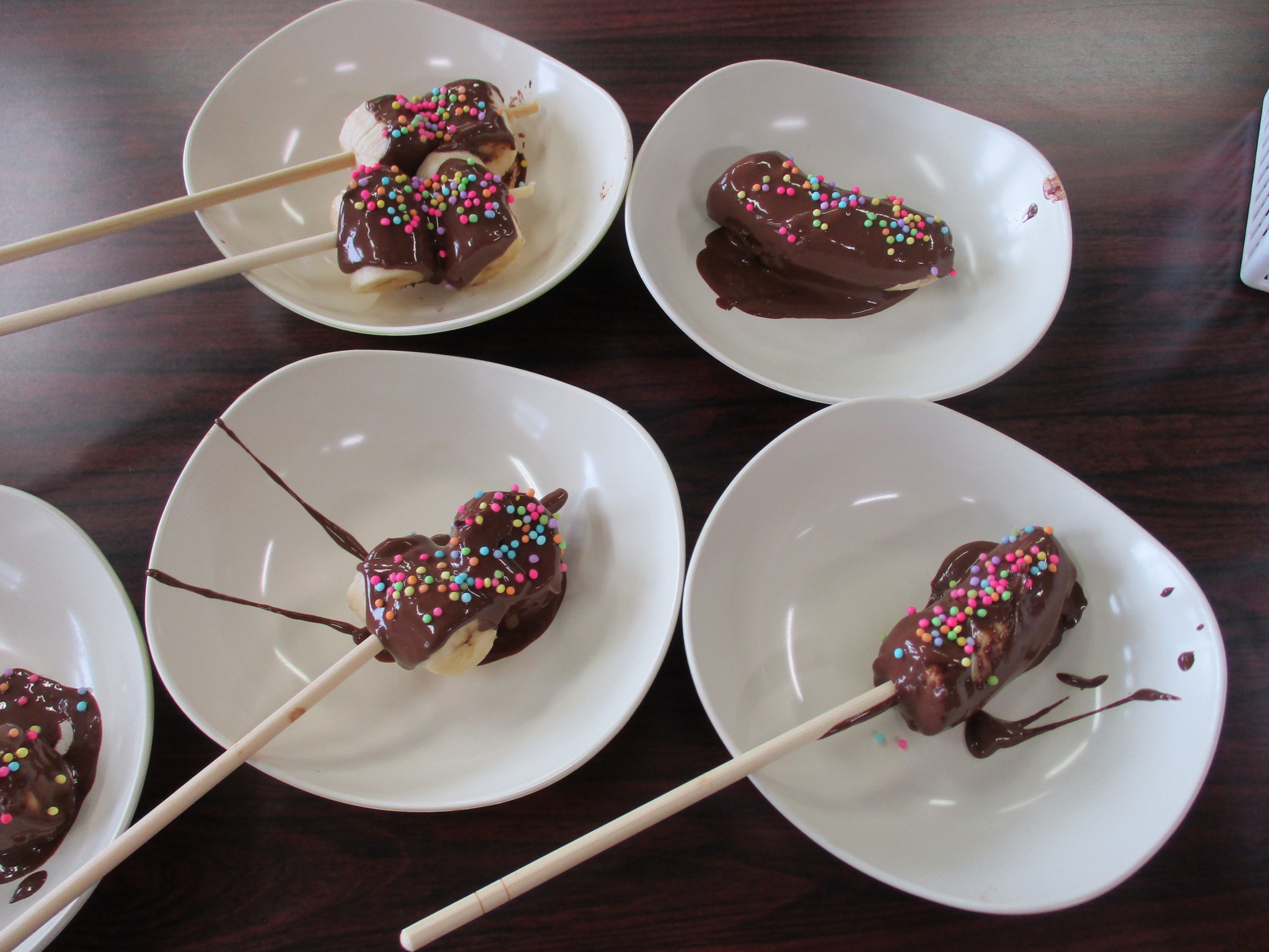 8月23日水曜日 きょうのおやつは、チョコバナナでした。夏祭りのおやつシリーズです。 → 前橋市宮城の里デイサービス居宅介護支援ブログ。