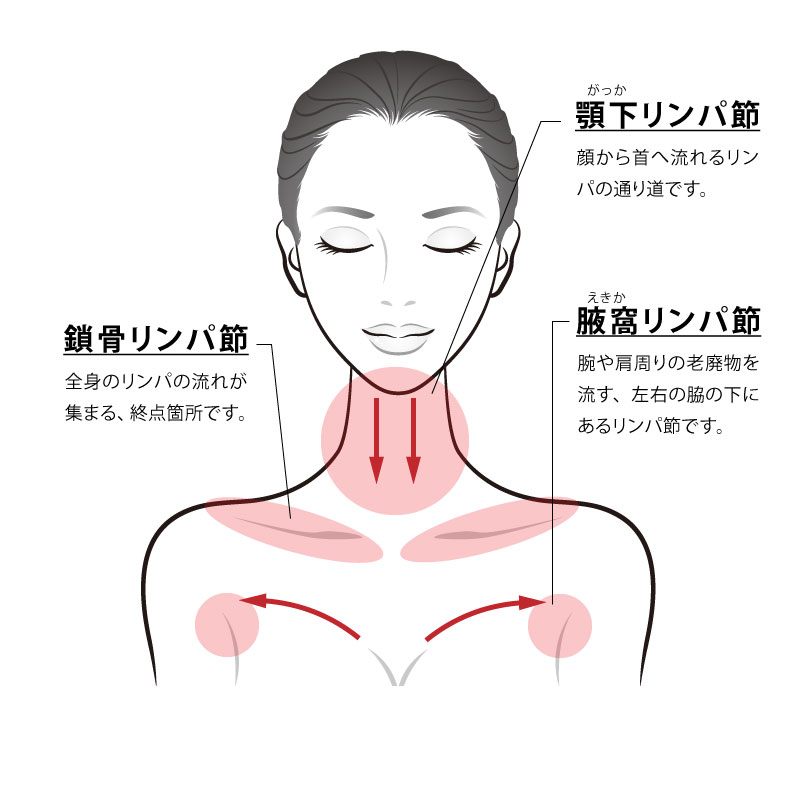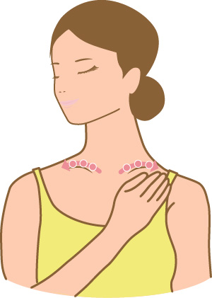 深部リンパ開放マッサージのやり方 鎖骨のリンパ節、顔・頭・首のリンパ節、わきの下のリンパ節。