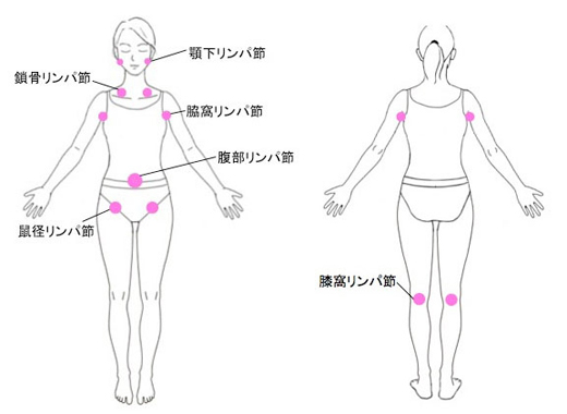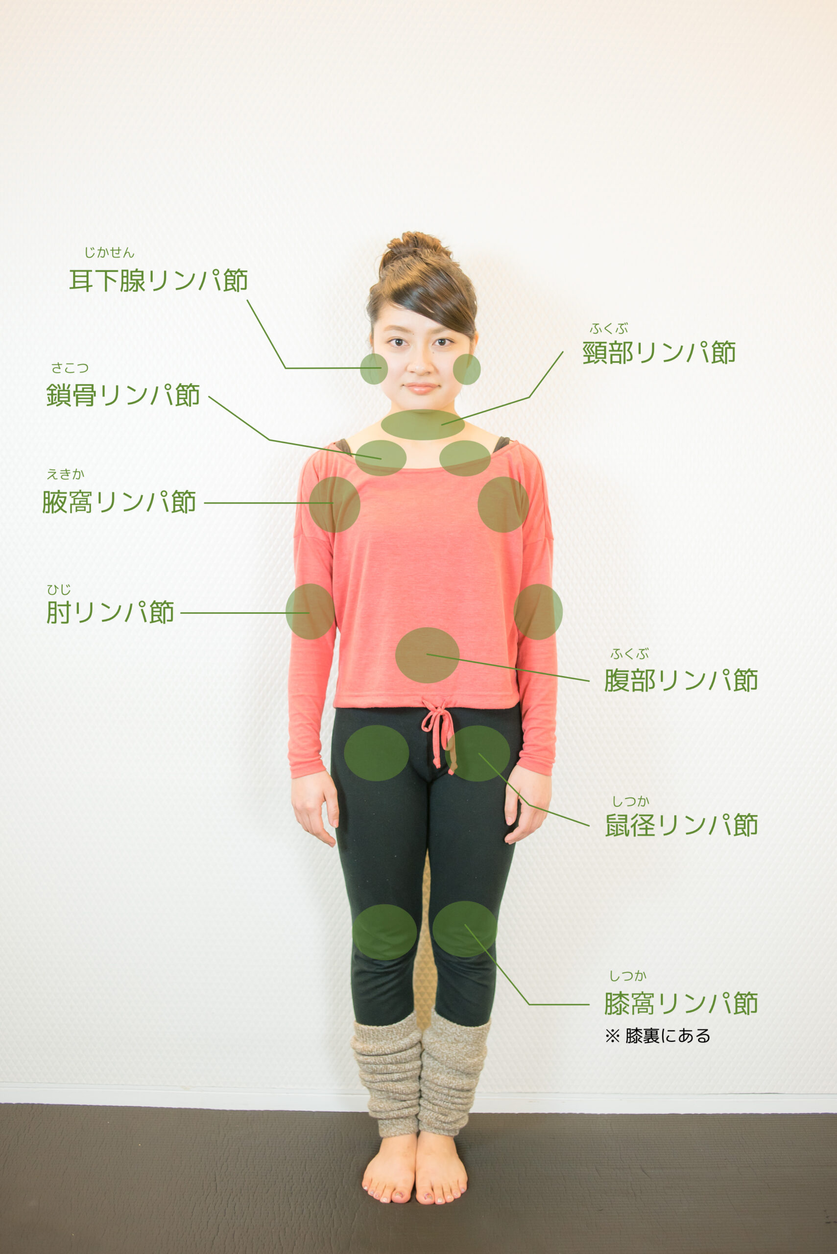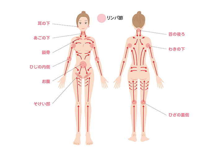 リンパドレナージュとは。ボディと顔の11ヶ所の主要リンパ節部分。