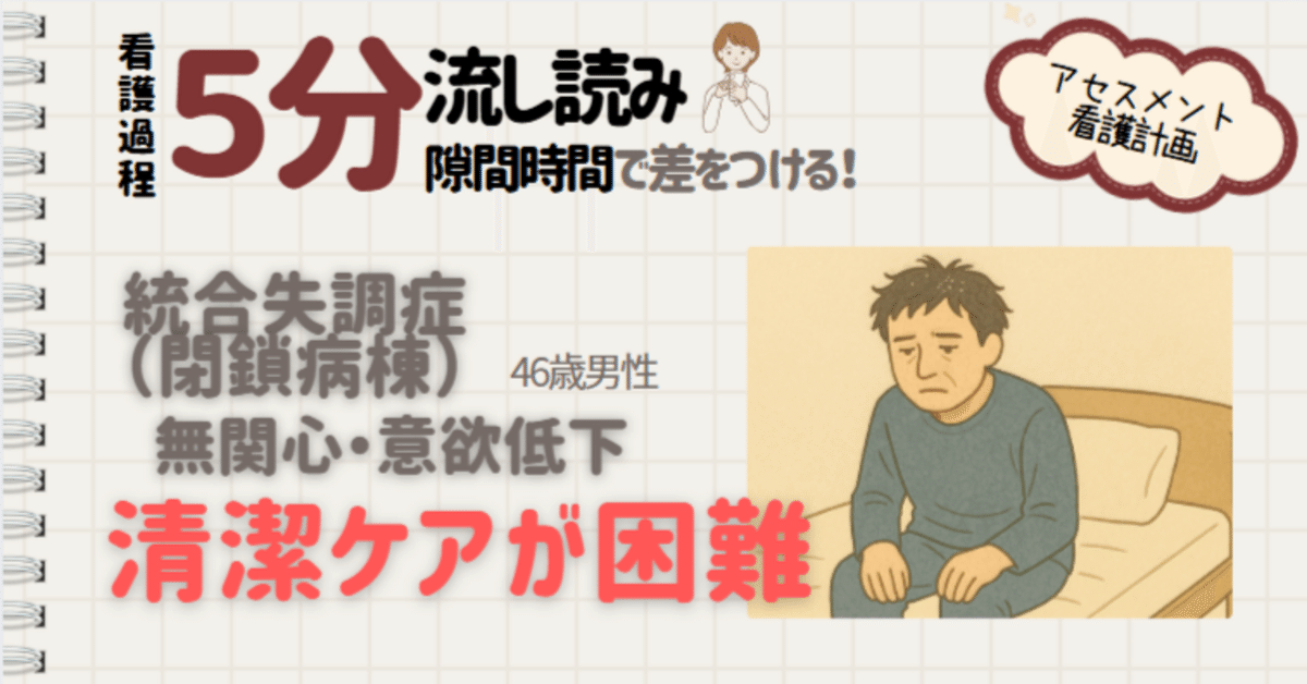 統合失調症による陰性症状、意欲の低下に関連した 清潔セルフケア不足うらナース 看護過程サポート coconalaにて総販売数720件評価4.9 5.0。