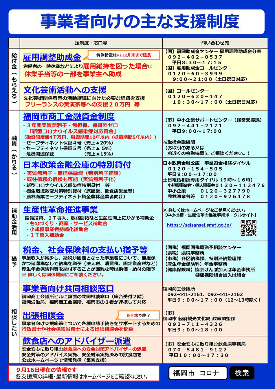 事業者向け 福岡県の新型コロナ感染症対策補助金などの9月最新版情報!NetIB-News。