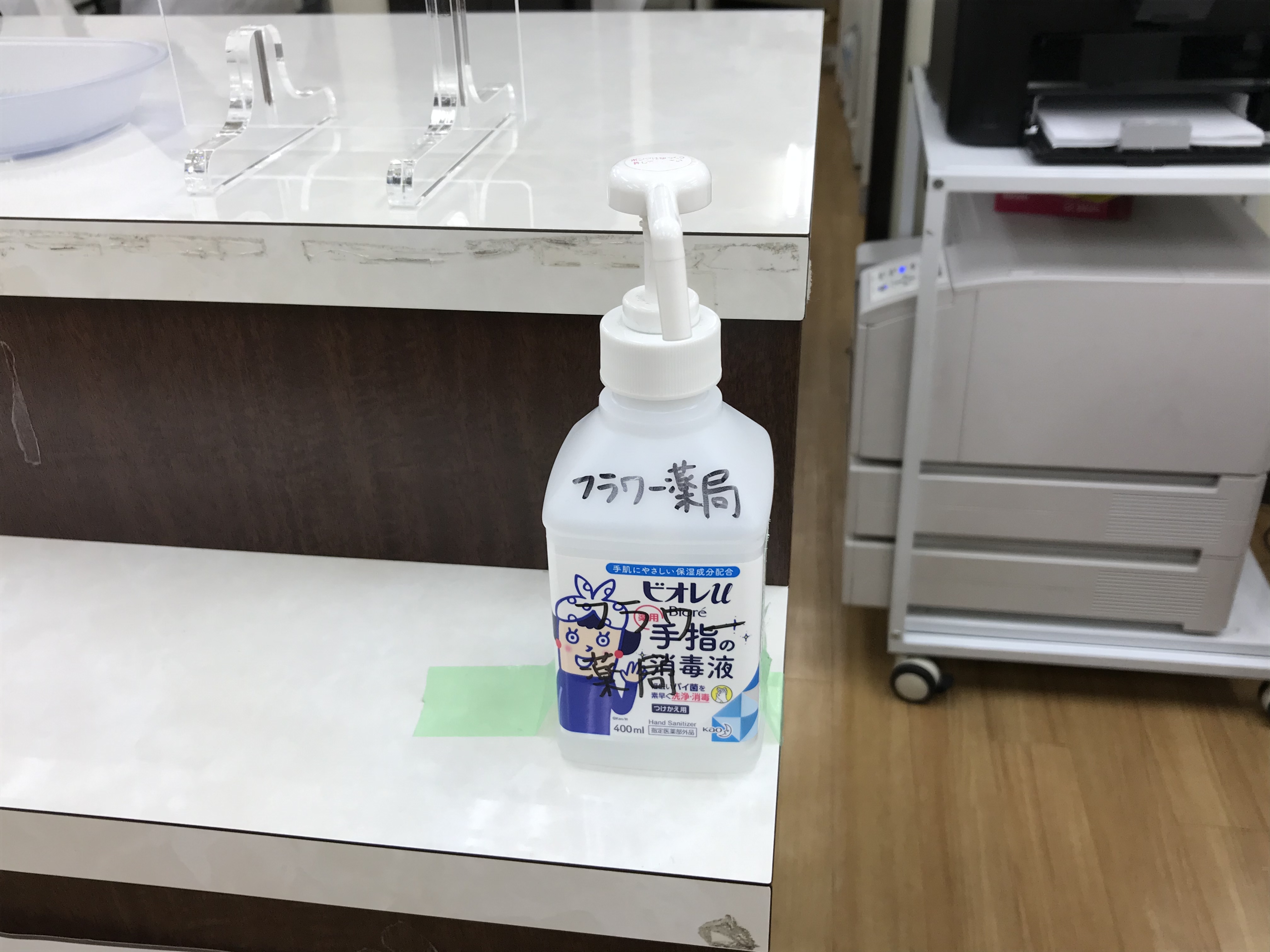 当社の新型コロナウイルス感染対策②:除菌・感染予防編フラワー薬局グループサンハルク株式会社。