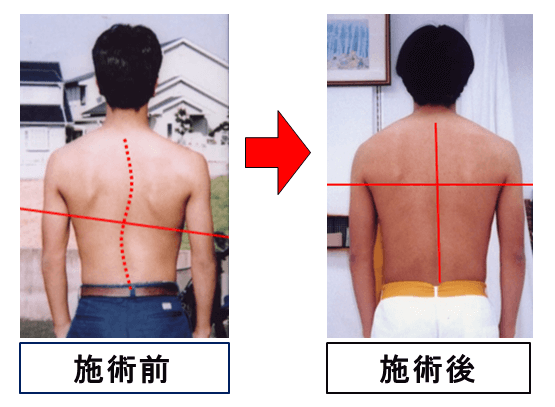 側弯症の治療の実例脊柱側弯症 側湾症 柳沢療法研究所。