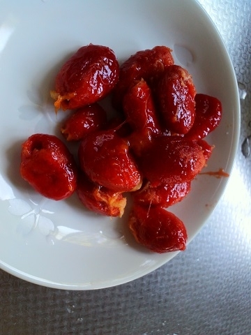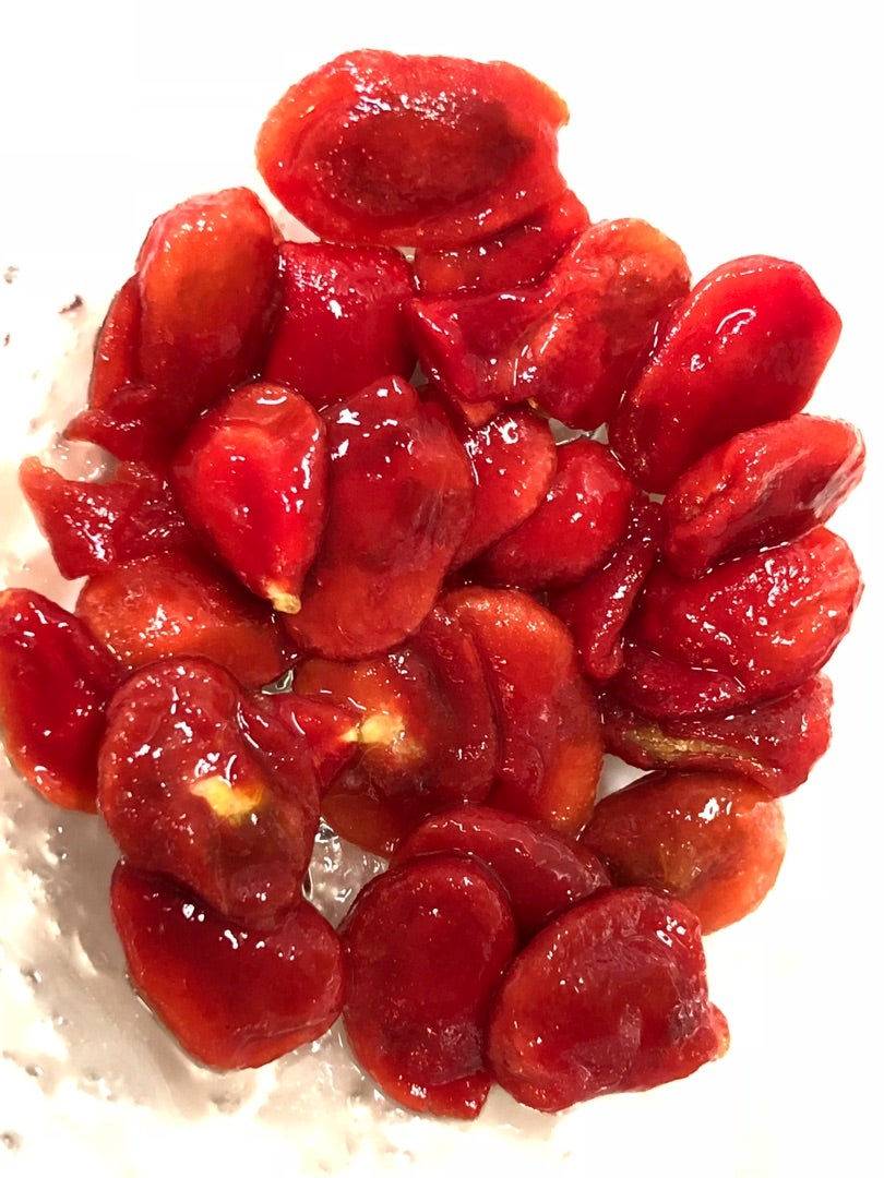 ゴーヤの熟した赤いタネもう、ゴーヤも終わりですねー! 今年はゴーヤチャンプルーよく使ったなぁー。 今年の夏、なかなか出会えなかった熟したゴーヤちゃんにやっと出会えました!タネがプルプルで真っ赤! この真っ赤なゴーヤのタネって食べられるの知ってました。
